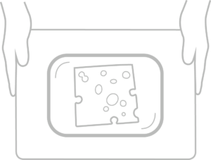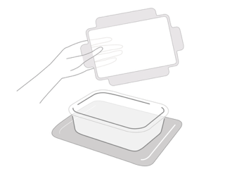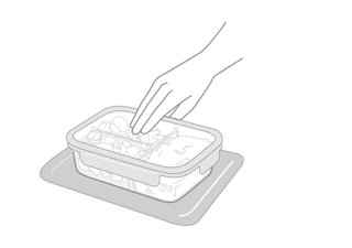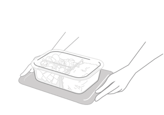 - Nimm den Deckel ab und stell das offene Behältnis auf das Tablett oder in den entsprechenden Bereich.
