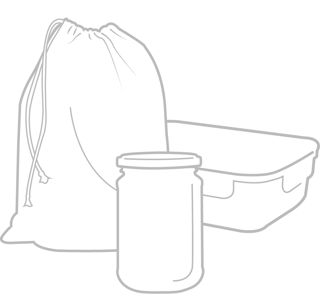 Spare unnötigen Verpackungsmüll, indem du beim Lebensmitteleinkauf Mehrwegbehälter mitbringst. Sag bei der Bestellung, dass du die Speisen oder Getränke in eigene Behältnisse füllen lassen möchtest.